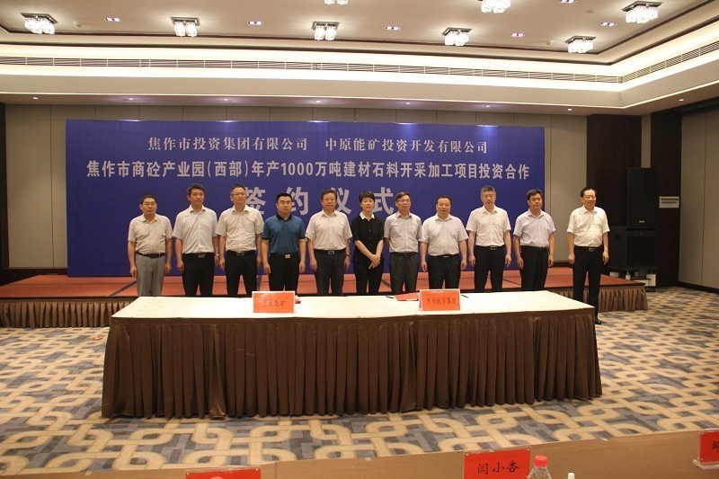 5月17日上午,集團公司與中原能礦投資開發(fā)有限公司在迎賓館舉行焦作市商砼產(chǎn)業(yè)園(西部)年產(chǎn)1000萬噸建材石料開采加工項目投資合作簽約儀式。河南省國土資源廳黨組成員、河南省國土資源開發(fā)投資管理中心主任吳孔軍,焦作市副市長閆小杏,集團公司董事長鄒仲春、總經(jīng)理王敏等70余人出席簽約儀式。