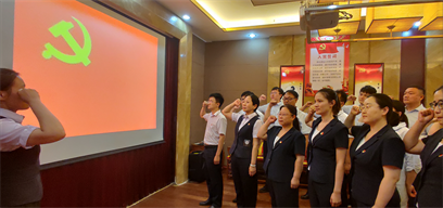 儀式結束后,與會全體黨員面向鮮紅的黨旗重溫入黨誓詞,莊重嚴肅、鏗鏘有力的誓言久久回蕩。