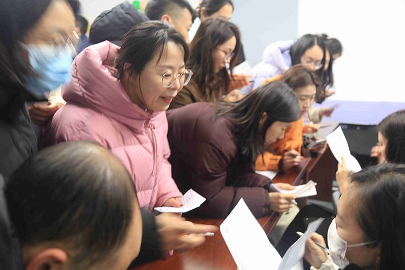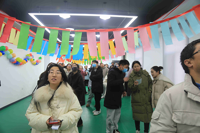 活動(dòng)現(xiàn)場(chǎng)設(shè)置了猜燈謎、蒙眼喂食、坐爆氣球、數(shù)字炸彈、夾紙運(yùn)杯等趣味活動(dòng),現(xiàn)場(chǎng)熱鬧非凡,趣味盎然?!懊裳畚故场被顒?dòng)考驗(yàn)參與者之間的溝通與協(xié)作,蒙眼的同事小心翼翼地摸索著,而指揮的同事則用語(yǔ)言引導(dǎo)著隊(duì)友,參與者們?nèi)橥度耄^眾們熱情高漲;在“坐爆氣球”活動(dòng)中,大家你追我趕,氣球爆破聲和歡笑聲交織在一起,氣氛熱烈;猜燈謎區(qū)域更是人氣高漲,彩色的紙條上寫滿了各種謎題,涵蓋了歷史、文化、法律、生活常識(shí)等多個(gè)領(lǐng)域,大家開(kāi)動(dòng)腦筋,認(rèn)真思考,猜對(duì)燈謎后臉上洋溢著喜悅的笑容。